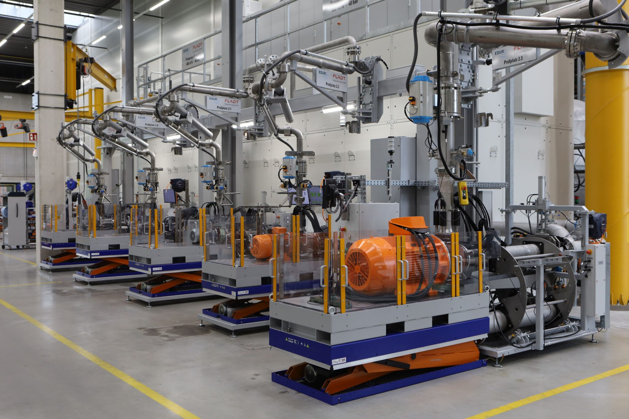 Kiel | Germany, July 2025 – After almost two years of intensive planning and implementation, the time has finally come: EDUR-Pumpenfabrik has put its new test facility into operation. Five new test bench stations have been created since construction started in February 2024, completely replacing the two previous test benches. The company has invested two